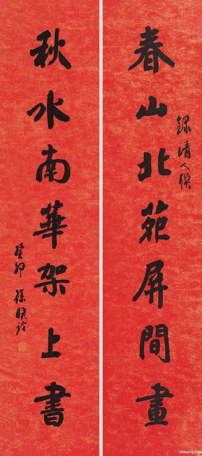 徐晓玲 书法 《春山秋水联》 180cm×32cm×2