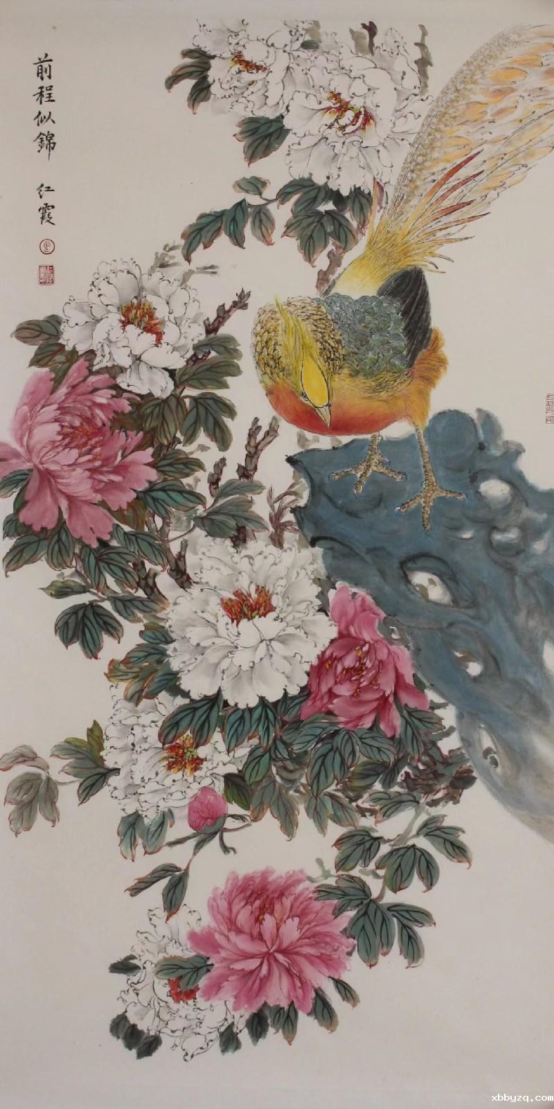 白如明 国画 《 待到山花烂漫时》 138cm×70cm