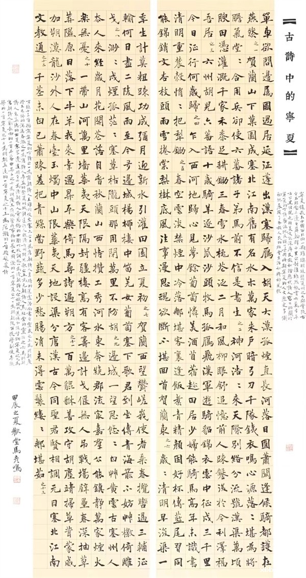 马彦鸣《关于宁夏的古诗数首》楷书180cmx96cm