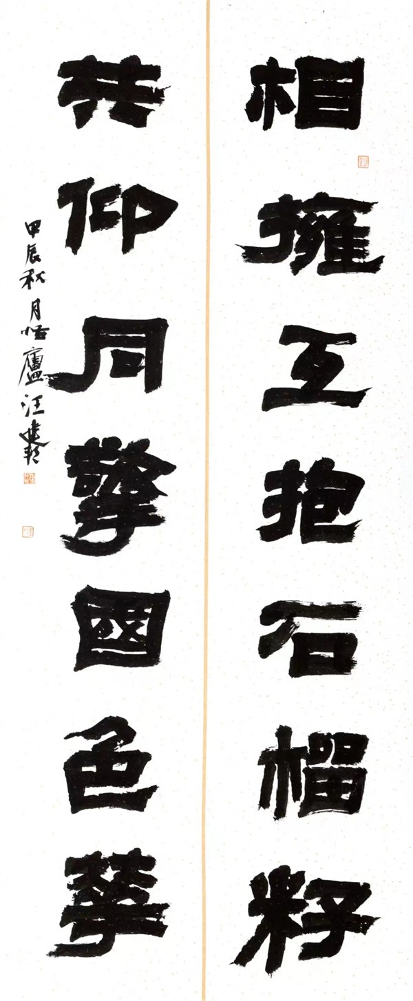 汪建邦《<相拥共仰>对联》隶书 180cmx74cm