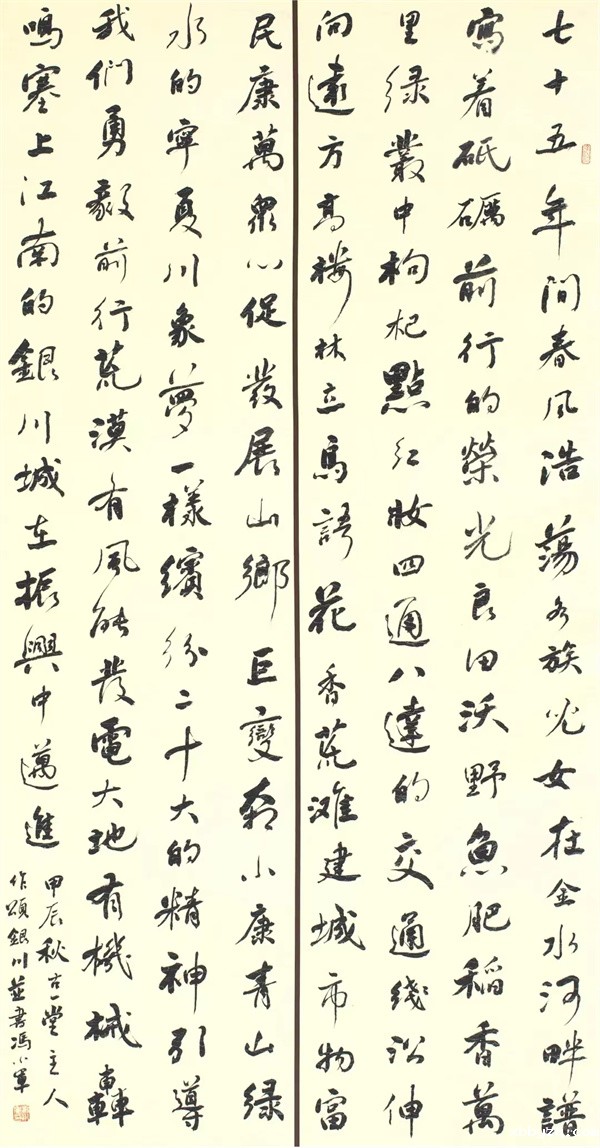 盛来宁《<云散花开>对联》 行书 180cmx80cm
