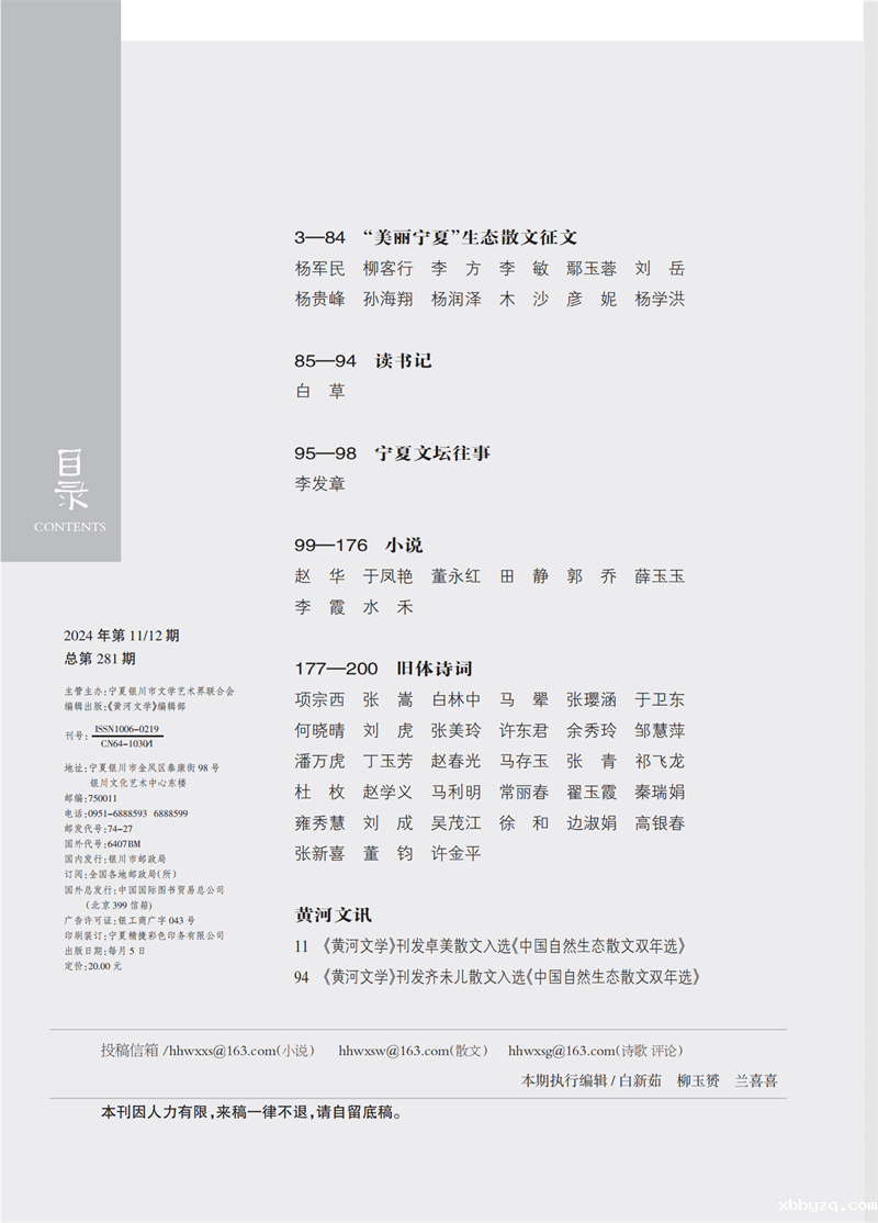 《黄河文学》2024年第11、12期目录