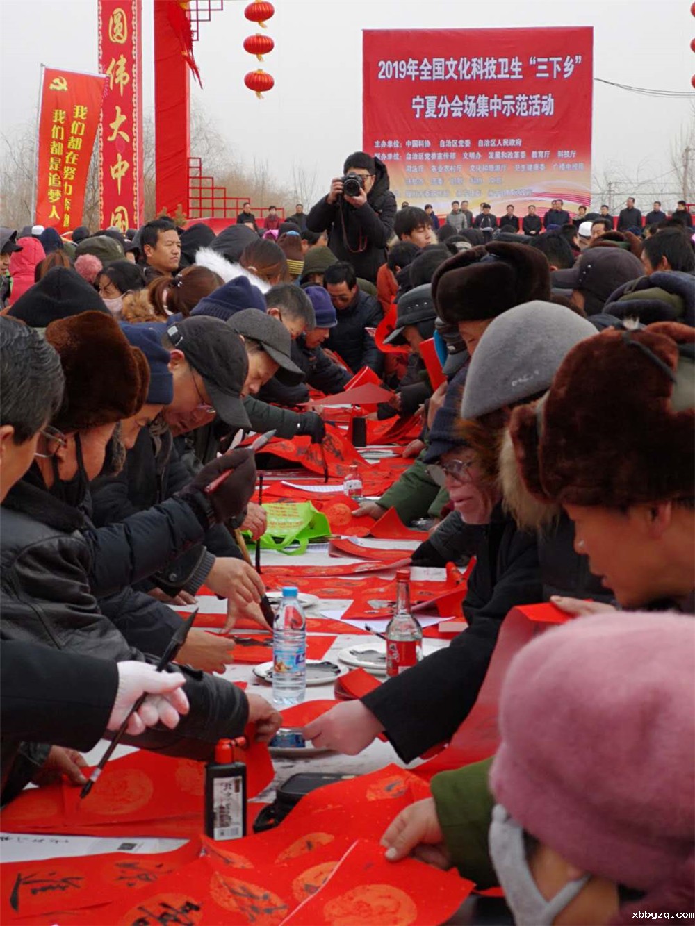 2019年1月16日,银川市文联组织书法家、剪纸艺术家在闽宁镇参加