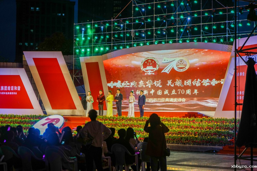 9月23日晚,由中共银川市委宣传部、市委统战部、市直属机关工作委员会、市民族事务委员会主办,市文学艺术界联合会承办的“吟咏经典庆华诞民族团结话和谐——庆祝中华人民共和国成立70周年经典诵读诗会”在银川市人民广场举行。当天,市直机关干部职工、市民等1000多人参加了活动。