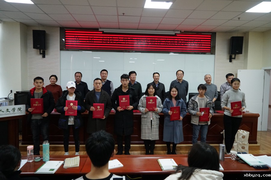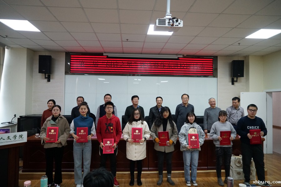 宁夏作家协会专职副主席及秘书长闫宏伟老师宣读第二届“阅读之星”获奖名单。各位领导和作家为获奖者颁发了荣誉证书和价值500元的购书卡,《黄河文学》编辑部还向宁夏大学人文学院捐赠了100本黄河文学杂志、宁夏回族自治区作协捐赠两套“文学宁夏丛书”。