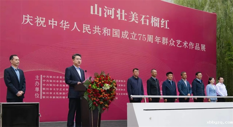 为热烈庆祝中华人民共和国成立75周年,深入学习宣传贯彻党的二十届三中全会和习近平总书记考察宁夏重要讲话精神,2024年9月20日,由银川市委宣传部、银川市直机关工委、银川市文联、银川市文旅广电局和银川市新闻传媒中心等多家单位共同举办的“山河壮美石榴红”庆祝中华人民共和国成立75周年群众艺术作品展在银川美术馆隆重开幕,为时代记言录史,为人民濡墨抒怀,为民族凝心聚力。