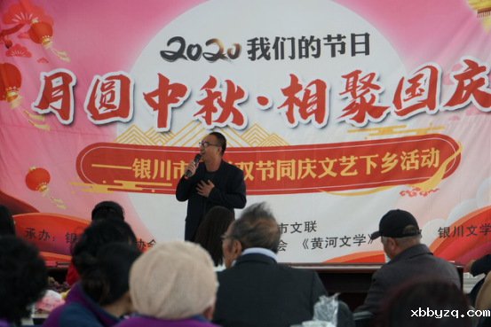 “我们的节日˙中秋” 9月28日,市文联与灵武市宣传部在清水营共同举办了“我们的节日——黄河情˙迎中秋˙颂祖国 ”中秋诗文朗诵会,我市众多诗人、作家和朗诵、音乐等艺术家汇聚一堂,以精彩的文艺节目表达对黄河、对祖国深切的爱;10月5日,举办了“月圆中秋˙相聚国庆”双节同庆文艺下乡活动,我市著名书法家、歌唱艺术家、朗诵艺术家共同为金凤区丰登镇联丰村村民送去了精彩的文艺节目,内容丰富,贴近生活,深受村民喜爱。