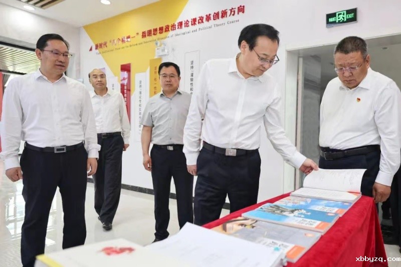 5月21日,梁言顺在灵武市职业技术学校,调研铸牢中华民族共同体意识宣传教育、中华优秀传统文化进校园活动情况。