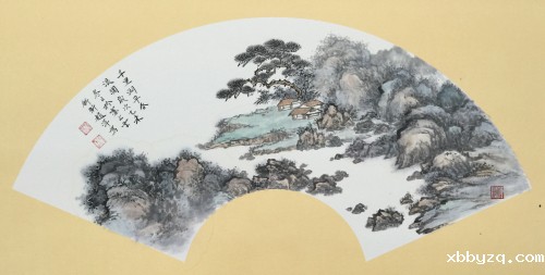 赵萍在山水画的表现技法上,最大的特点就是给人一种清、透、亮、净的感受,这也是女性画家所能表现出的独特之处。赵萍善于运用点染的技法,明确地拉开山石的层次关系,在用墨和设色上不急、不燥,由淡而浓,逐次递进,反复点染,并将勾染与晕染充分结合,增强了画面的空间层次和厚重感。