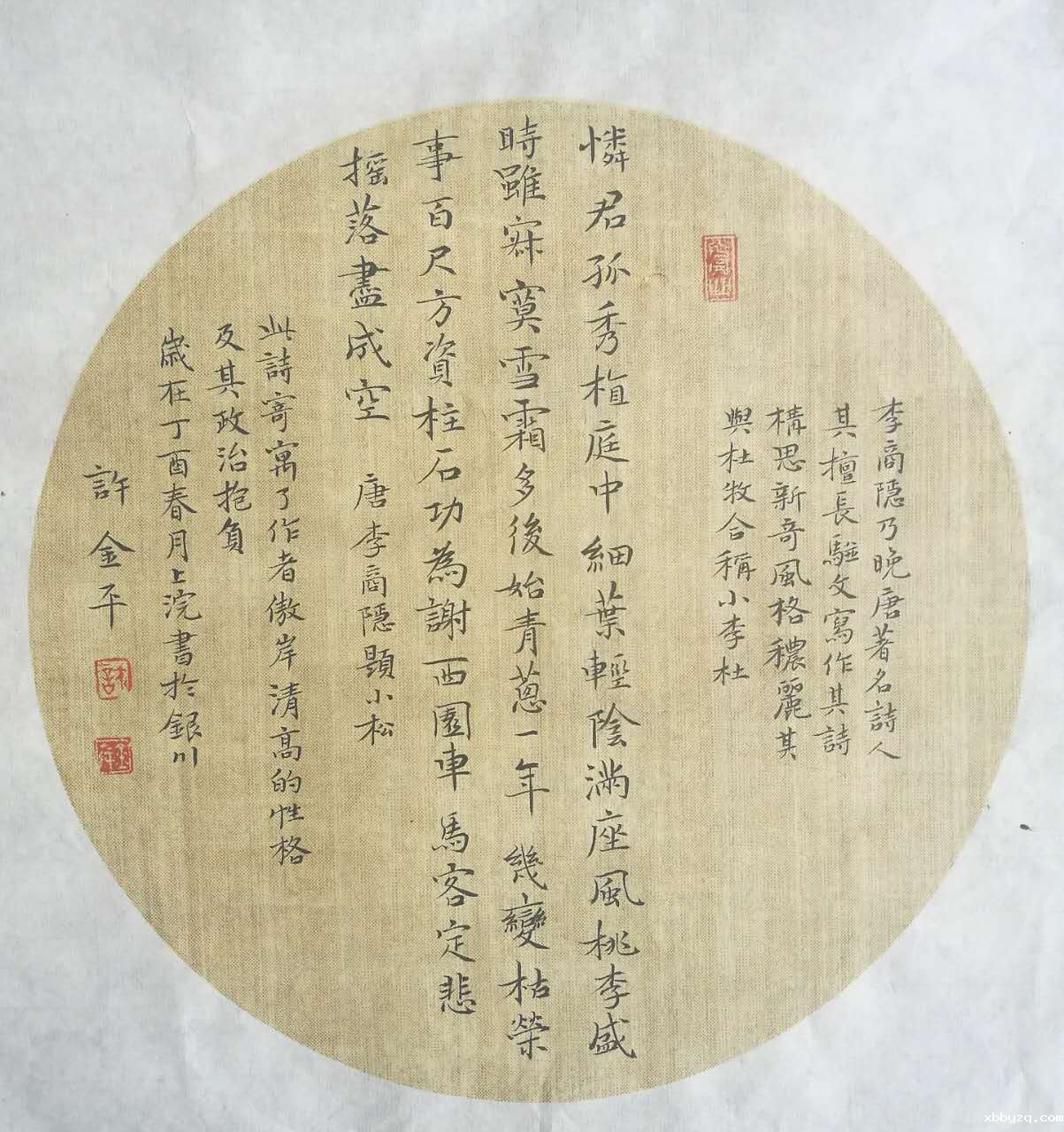 说起许金平,真是一个才女。在去年有一次朋友组织的聚会上,说是聚会,实际上像艺术沙龙,她也在座,看上去很腼腆。朋友介绍说她是一位画家,在大家的鼓动下,要她为在座的一位男士画张速写肖像,她也不推辞,只十几分钟的光景,就已画得惟妙惟肖,形神兼备。让我惊叹的是,一个年纪轻轻的女士在纷扰的环境下如此气定神闲,画起画来游刃有余,可谓一气呵成,当时便记住了她。没几日在我主持的宁夏诗词学会迎春茶话会上又见到了她,原来她也爱好诗词,还经常在《朔方》、《夏风》诗刊上发表作品。这一次她主动请缨,声情并茂地朗诵了一首《春江花月夜》,优美的长诗被她完全背了下来,为茶话会增色不少,赢得了在场诗友们的热情掌声。