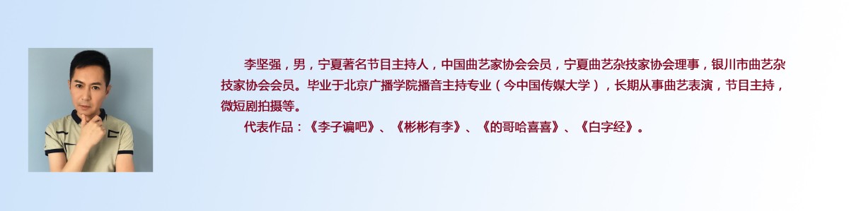 李坚强曾师从“常派”单弦著名表演艺术家、曲艺作家、教育家张剑平先生学习曲艺创作。与老师徐明智合作创作的宁夏坐唱《白字经》获第七届中国政府文华奖。